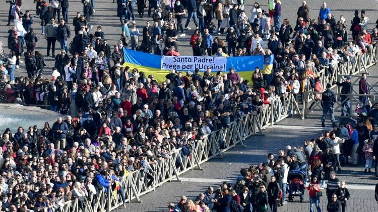 Ad anelare alla pace, ci sono innanzitutto i fratelli e le sorelle ucraini “che vivono questo Natale al buio, al freddo o lontano dalle proprie case, a causa della distruzione causata da dieci mesi di guerra”. Il Papa alza la mano e indica i fedeli che sventolano bandiere blu e gialle in Piazza San Pietro.